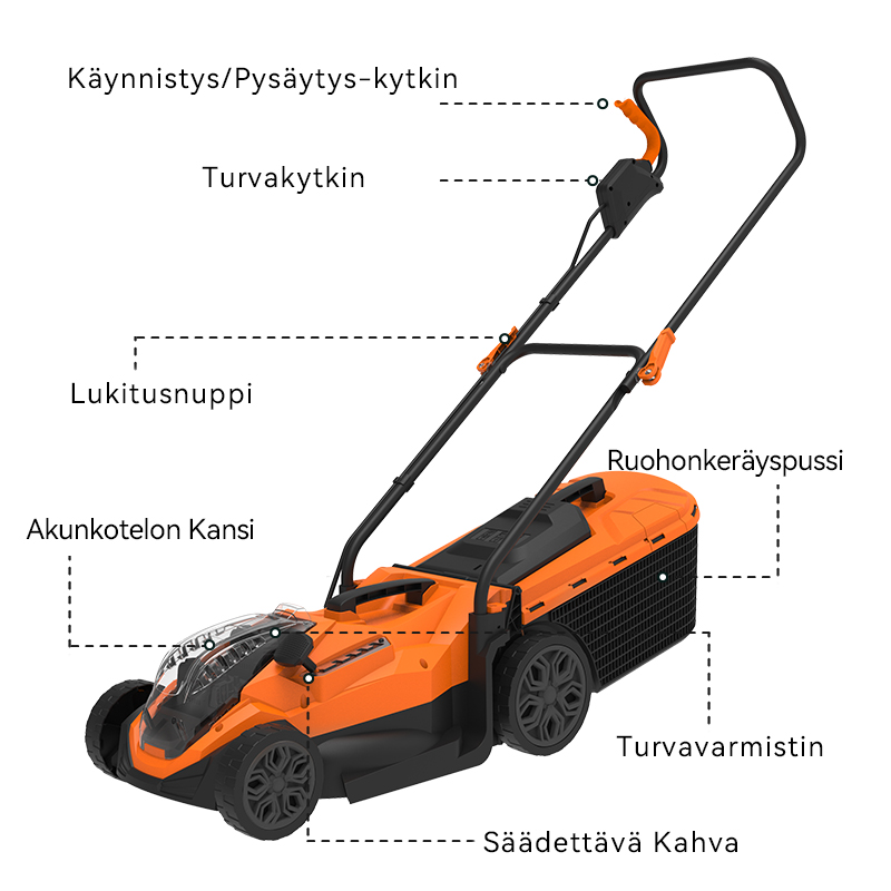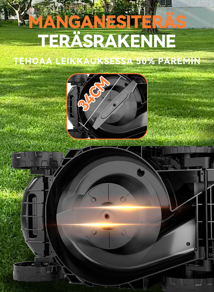 Muuta nurmikkosi hoito vaivattomaksi ja tehokkaaksi. Älykäs suunnittelimme yhdistää tehokkuuden ja käytännöllisyyden, ja sisältää akun tilan seurannan, mukavan käytettävyyden ja tilansäästöä. Älykäs multausjärjestelmä hoitaa nurmikkosi samalla kun nautit sulavasta, vaivattomasta käytöstä - kaikki yhdessä tyylikkäässä paketissa.