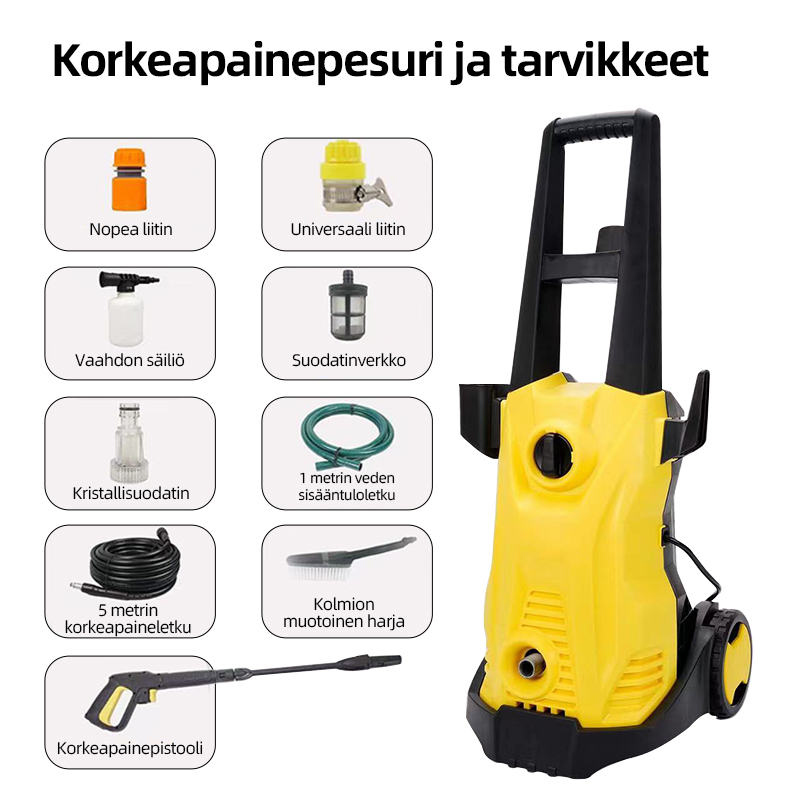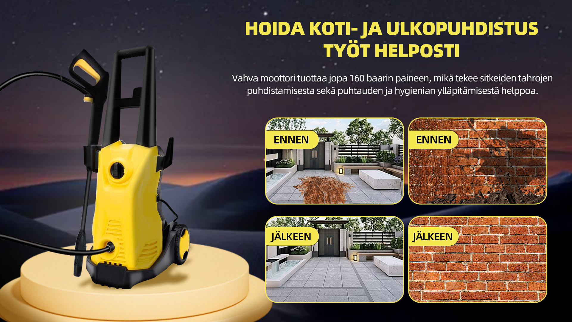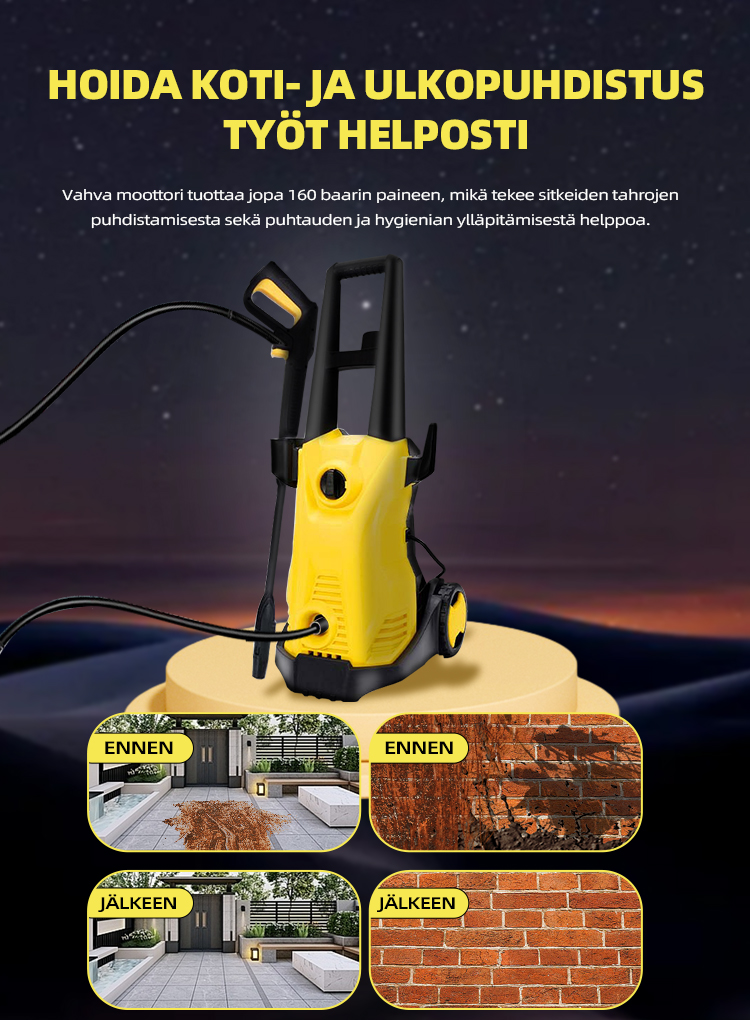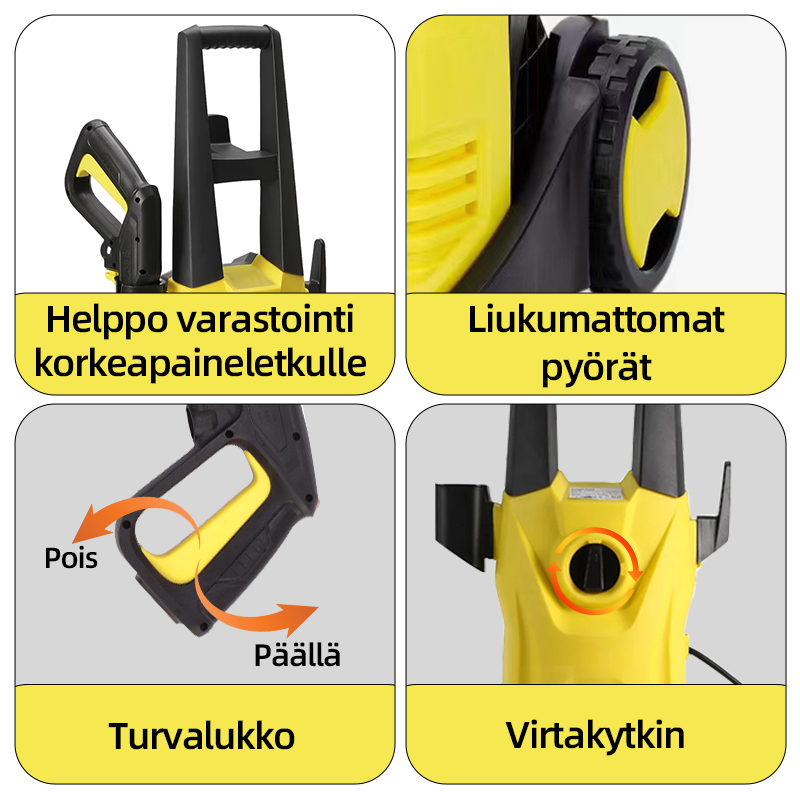 Painepesukoneemme on suunniteltu kestäväksi vedenkestäväksi, mikä takaa luotettavan suorituskyvyn jopa vaativimmissa ympäristöissä. Olipa kyse ulkotöistä tai sisätilojen puhdistustehtävistä, se on rakennettu kestämään veden vaikutusta ilman, että tehokkuus tai turvallisuus kärsivät. Näin ollen se pidentää laitteen käyttöikää.