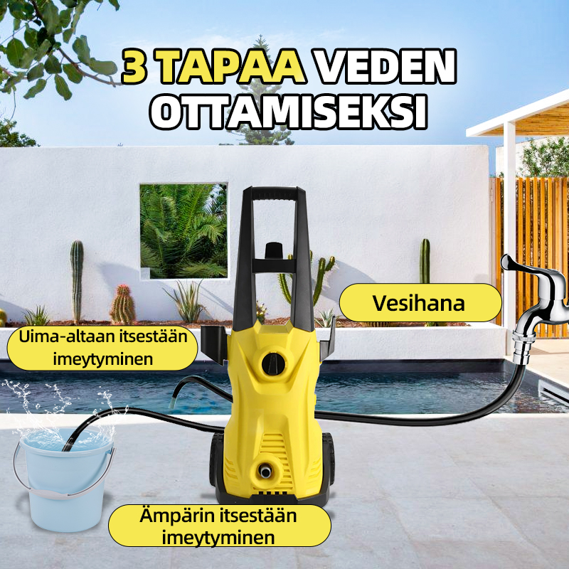 Painepesuri tarjoaa monipuolisen valikoiman vedenotto-tiloja, jotka täyttävät erilaiset käyttäjien mieltymykset ja käytännön tarpeet. Kolmen päävaihtoehdon avulla käyttäjät voivat kätevästi valita vedenoton tavan, joka parhaiten sopii heidän puhdistustehtäviinsä: Hanan vedenotto, Altaan vedenotto, Ämpärin vedenotto.